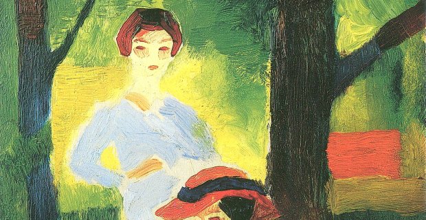 Die Leinwandbilder von August Macke zeigen oft alltägliche Situationen, in denen Menschen agieren, als würden sie nicht beobachtet. Flanierende Damen, lesende Personen an Schreibtischen oder ein spielendes Kind im Garten sind Motive, die August Macke Leinwandbilder ausmachen. Neben diesen gegenständlichen Gemälden fallen auch sehr abstrakte Motive auf. Häufig handelt es sich um Farbkompositionen, die auf den ersten Blick keinen Gegenstand abbilden. Bei diesen Kunstdrucken kommt die besondere Farbwahl August Mackes zum Tragen.