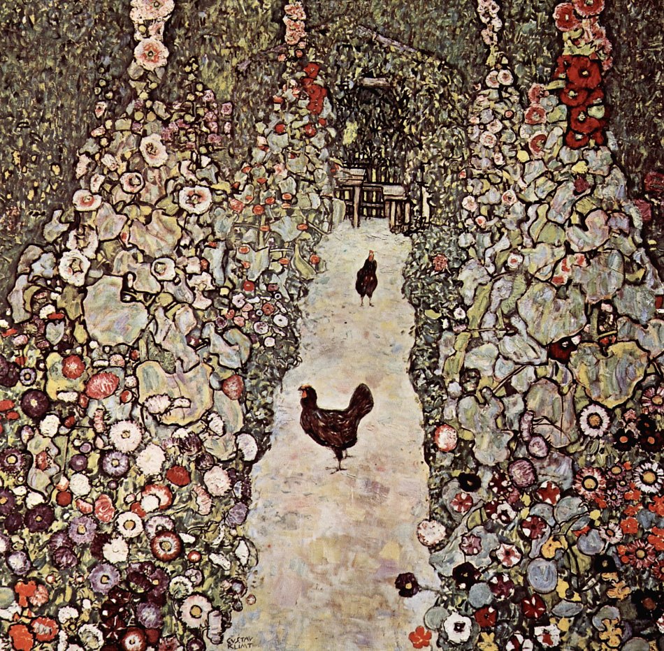 / Gartenweg mit Huehnern